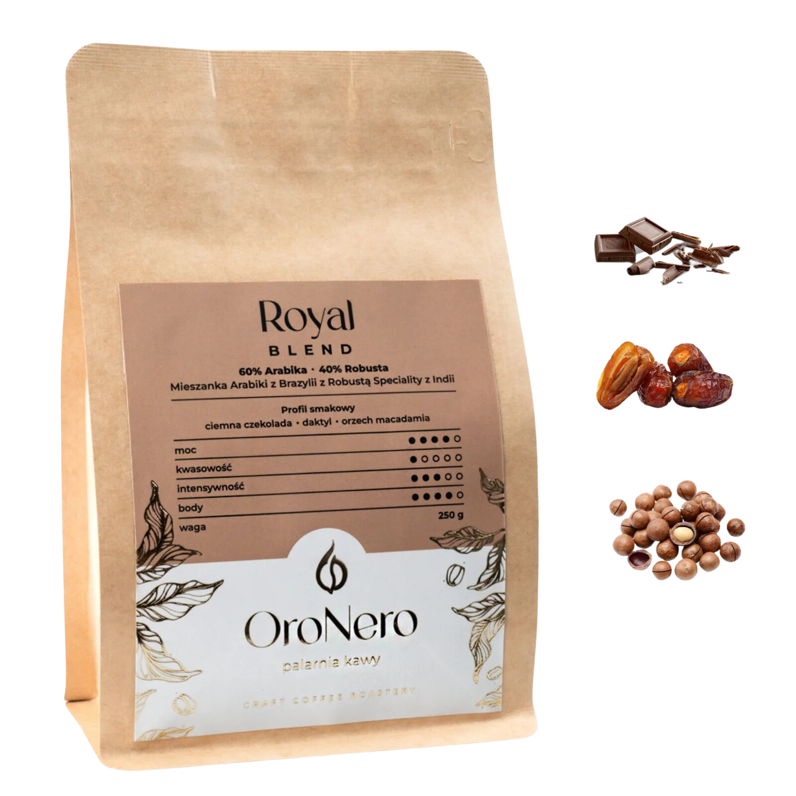 Nuty smakowe: Ciemna czekolada, daktyl, orzech makadamia.
