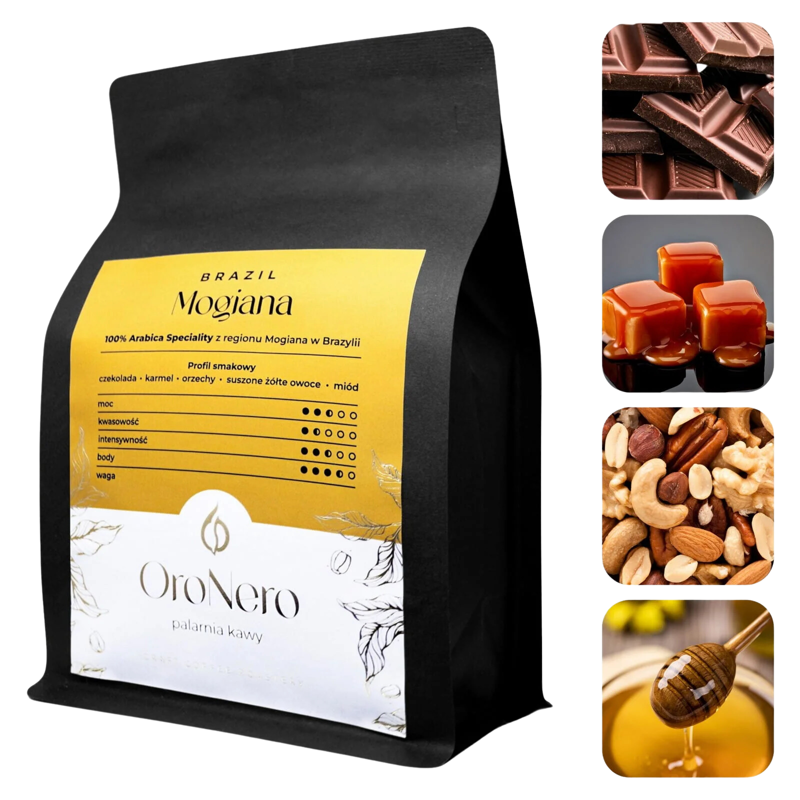 Nuty smakowe: Czekolada, kakao, karmel, orzechy, nuty pomarańczy